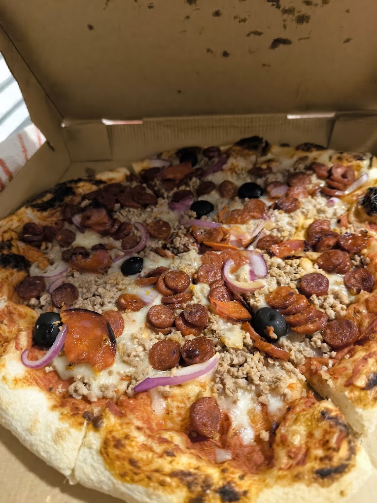 La pâte à pizza est faite maison. Toutes nos pizzas sont bien garnies avec des produits de qualité.